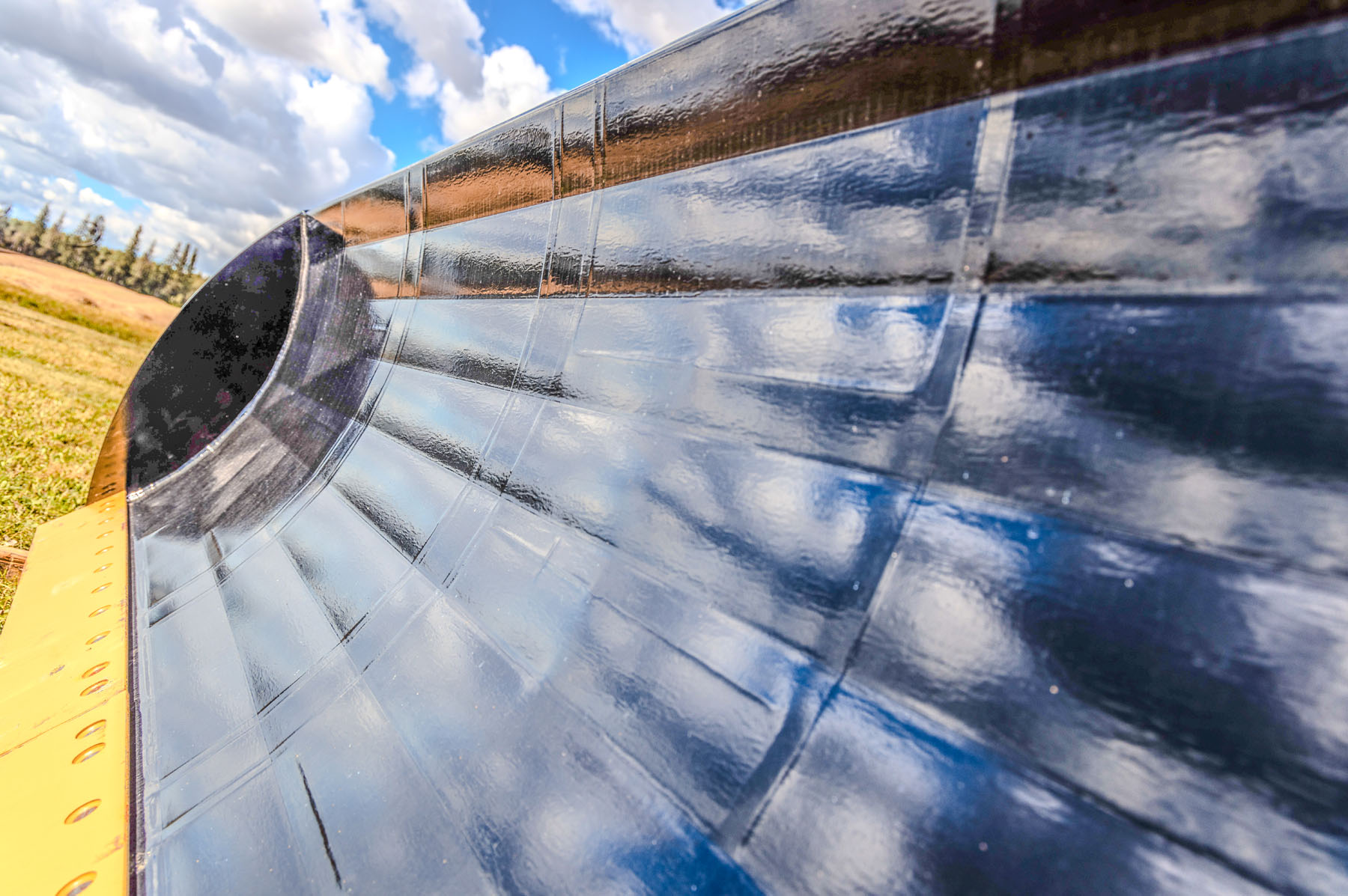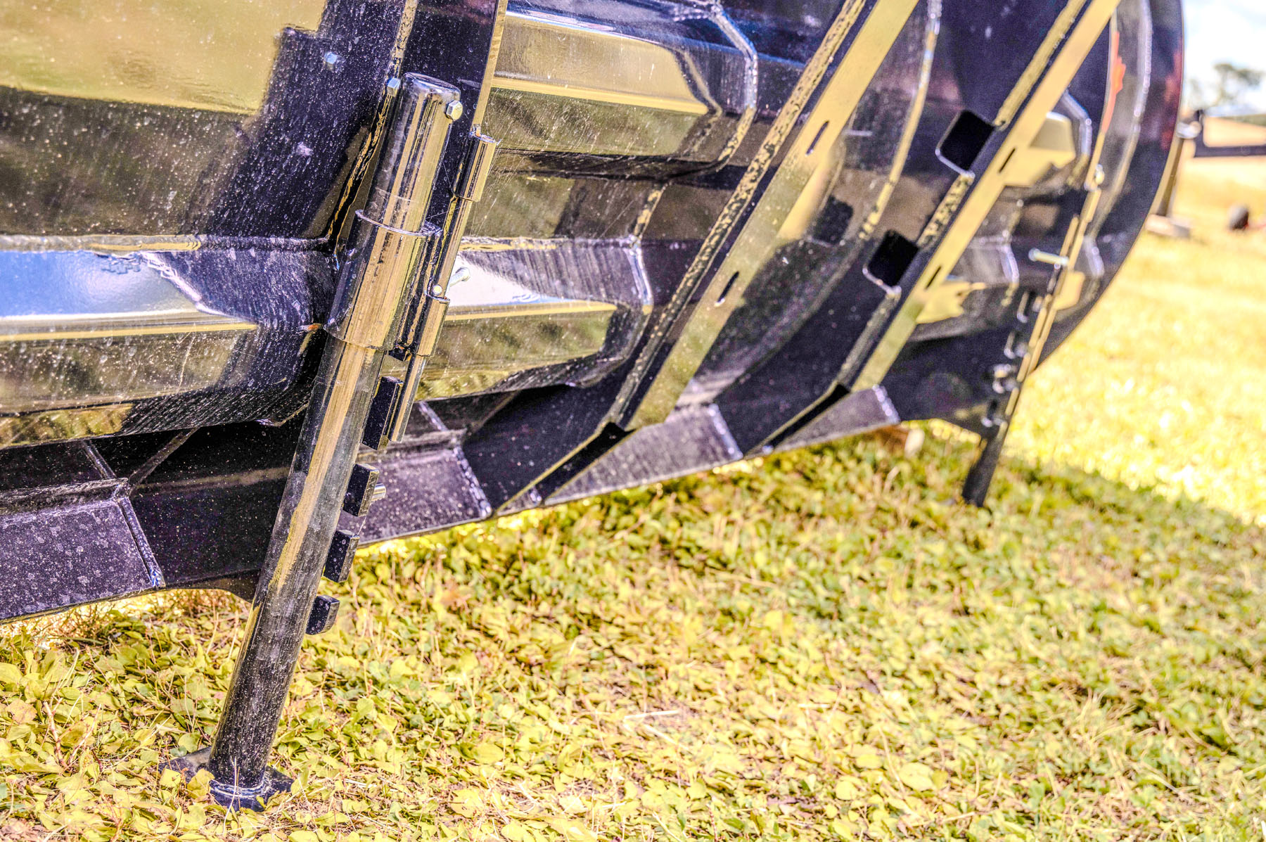 The blade ends are capped to help reduce material spillage during operation, improving control and making the work process cleaner.