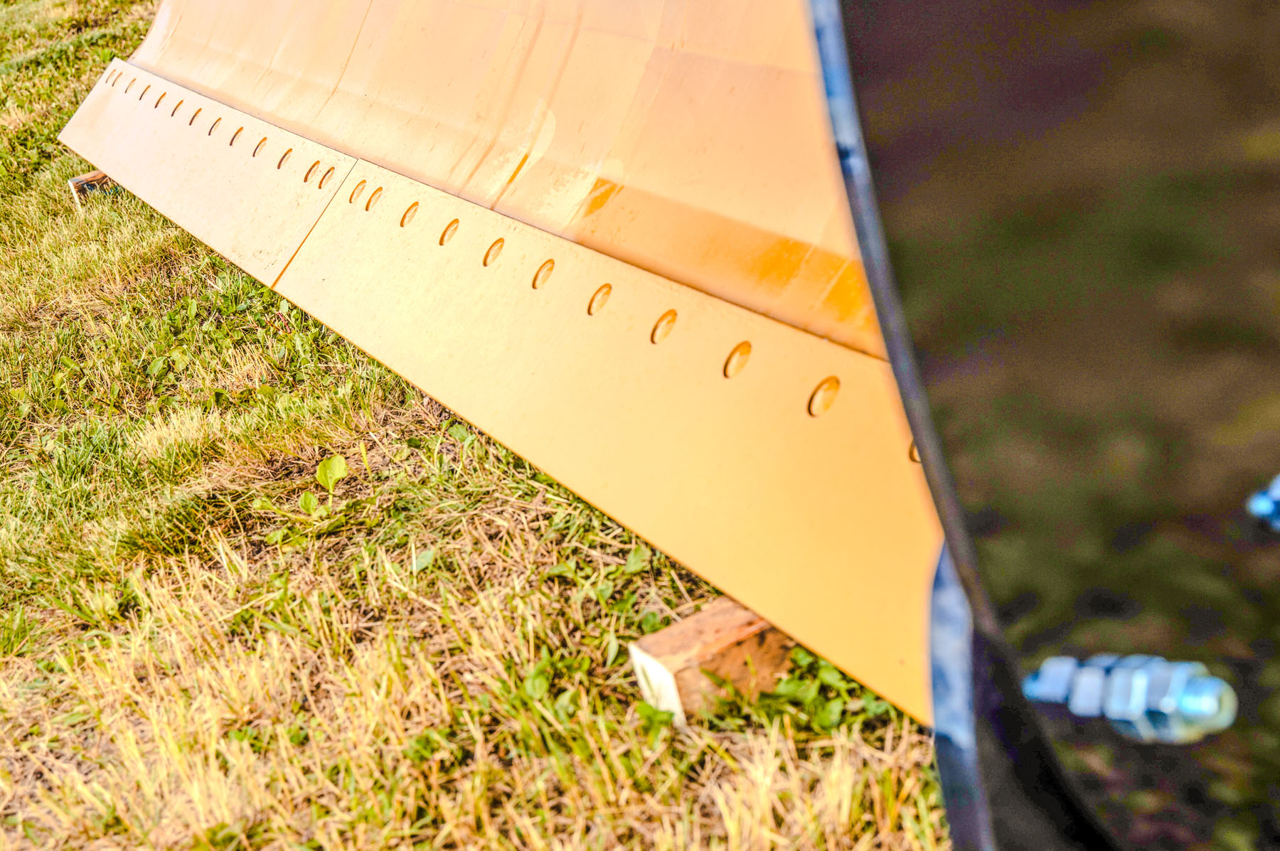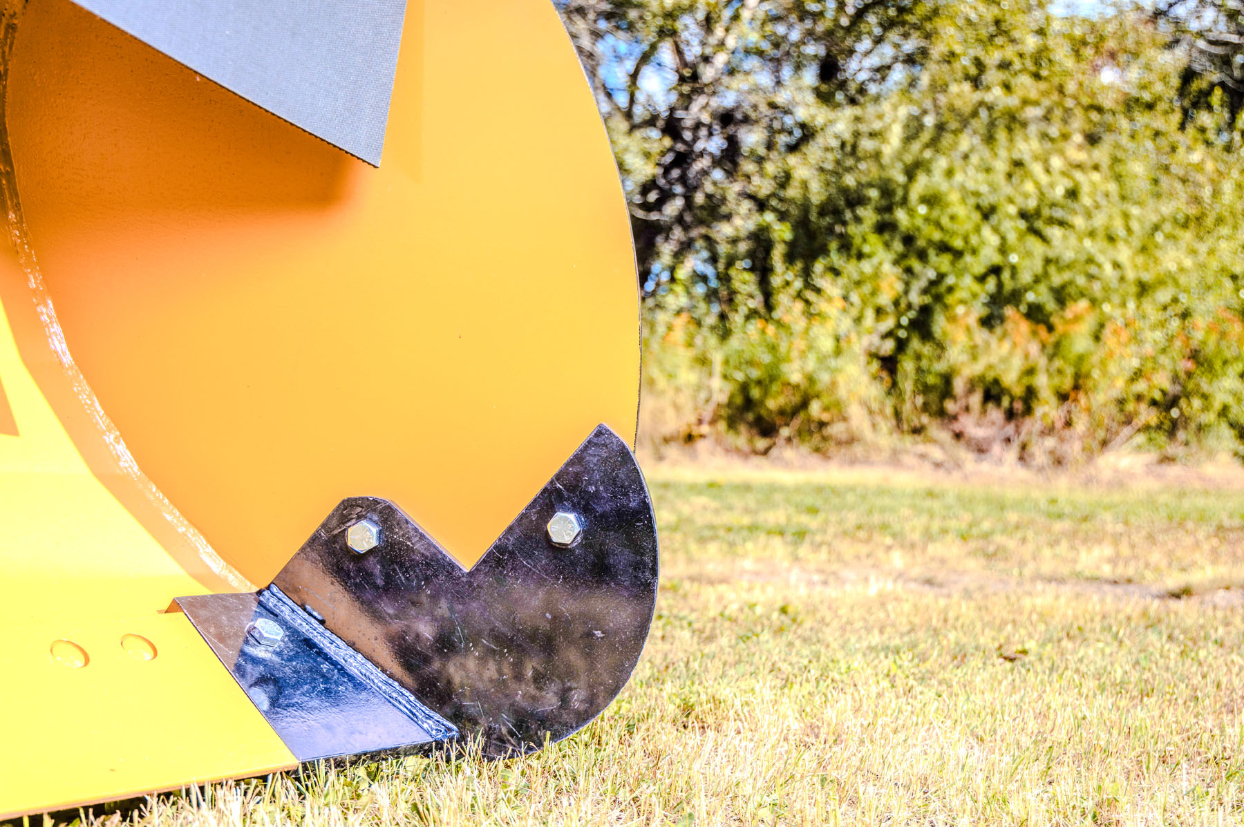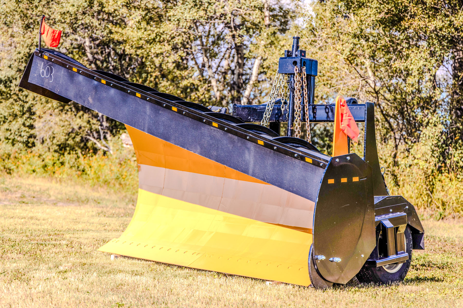 Yes, the plow is equipped with guidance wheels to minimize ground contact and prevent wear to the cutting edge. The chains support 85% of the plow weight, and 15% of the plow weight is on the wheels.