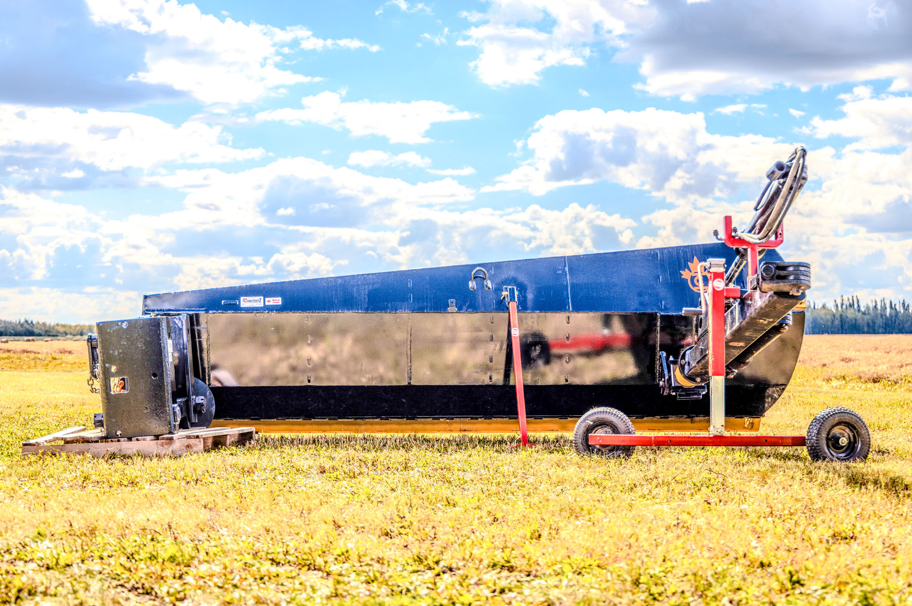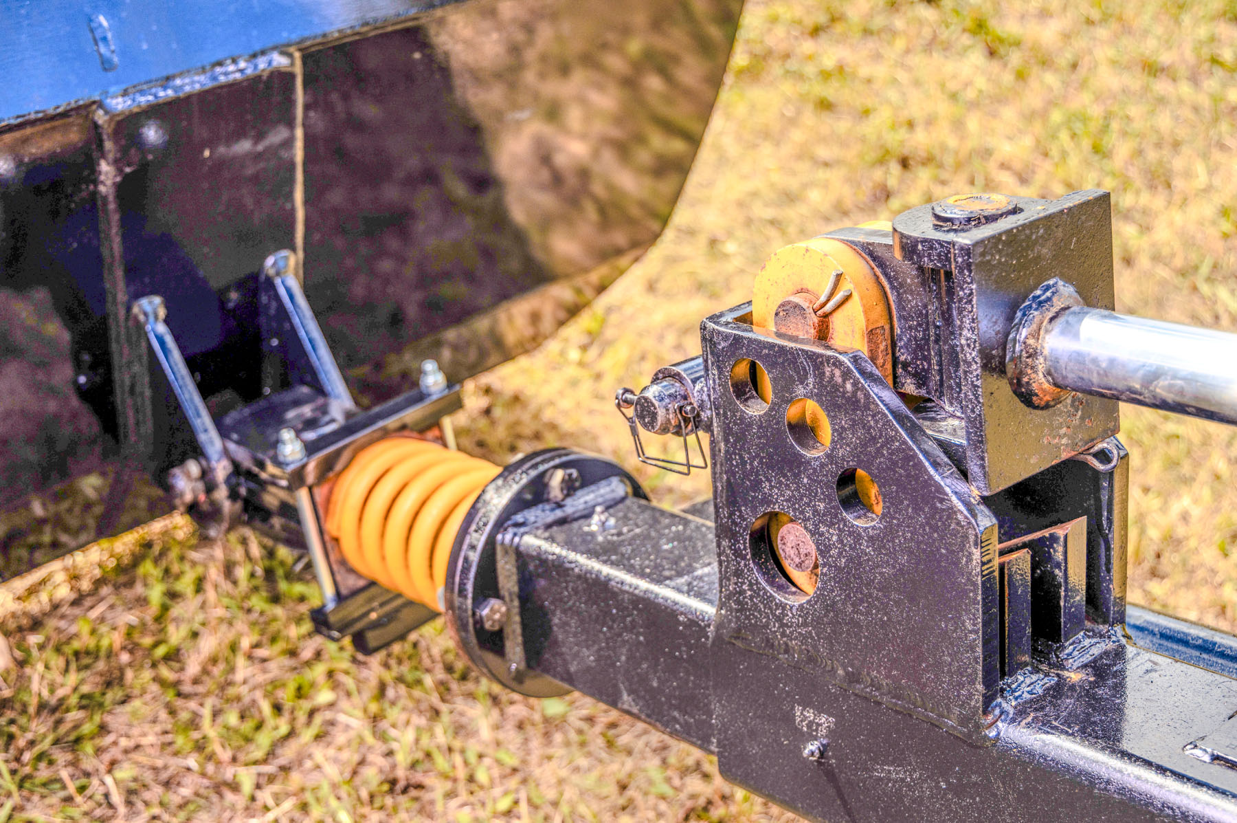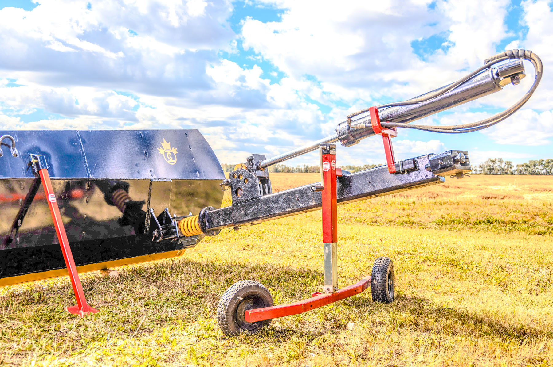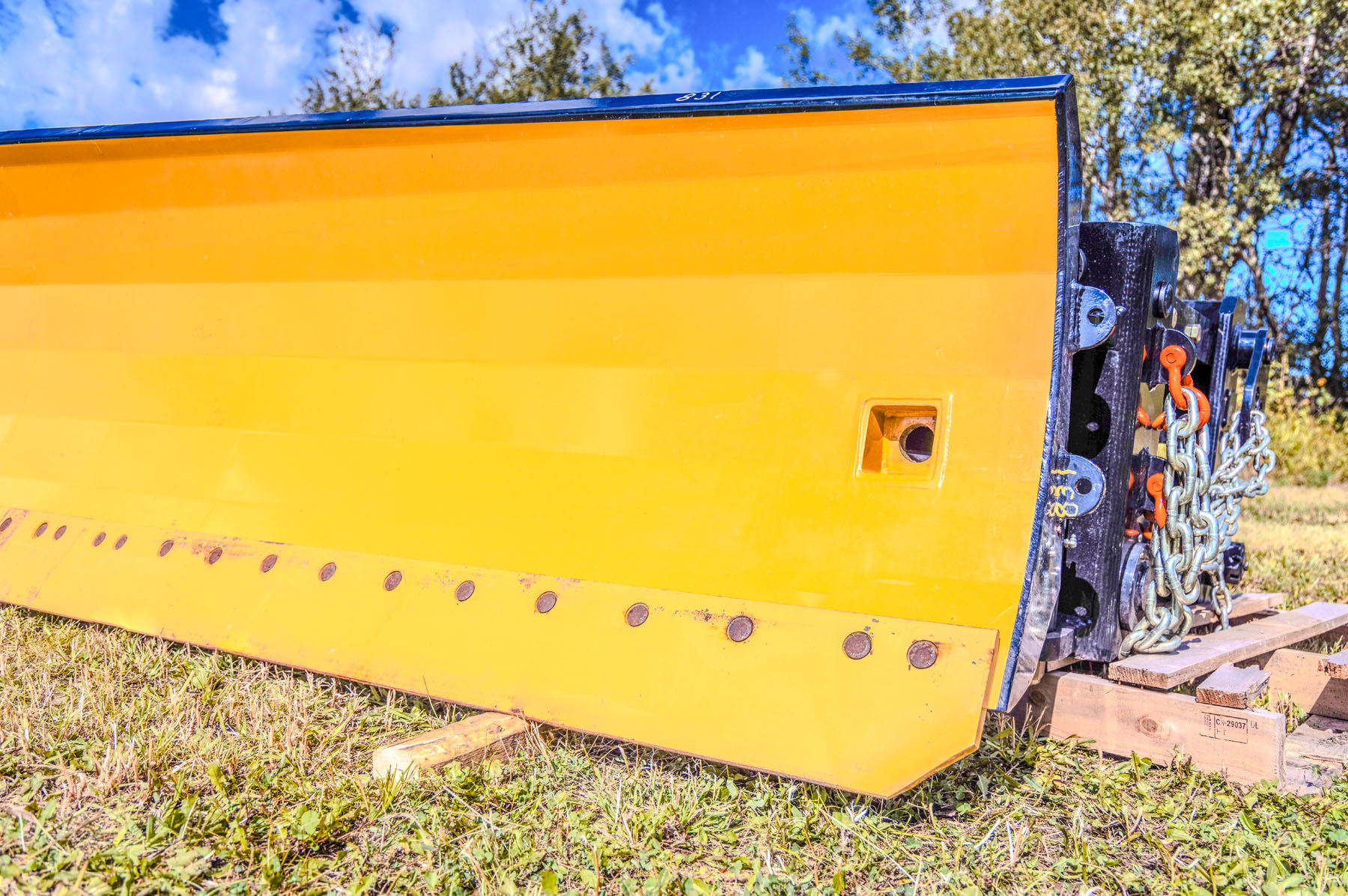The wing blade’s rear lift arm can float up to 30 inches or be pinned to hold it 30 inches closer to the grader for transporting purposes.